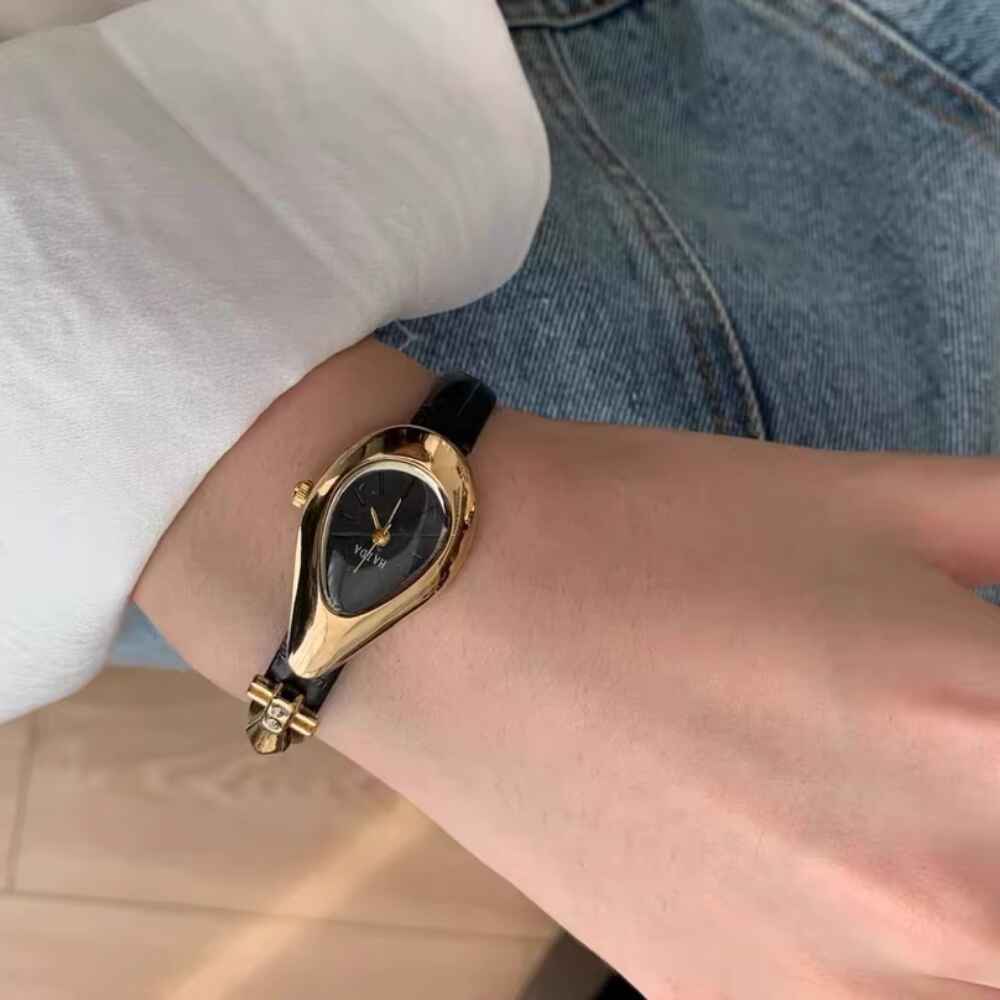 • A Watch as Unique as You: The drop-shaped case and genuine leather strap create a look that’s both elegant and personal, making it the perfect accessory for casual outings or formal events.